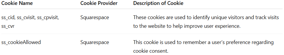 This website is hosted on Squarespace, which uses cookies to support the functionality and performance of the site.